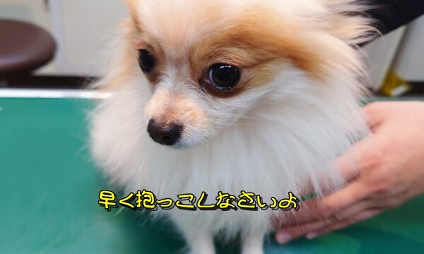 【保護犬】128(いっぱ)(ポメラニアン)♀ 【128(いっぱ)】と【ミルヒ】動物病院へ