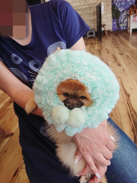 お迎えした翌月のsmilewanさんの保護犬お見合い会にスフレも連れて行ったら、シェリままさんが抱っこしてくれて気が付いた時には何か被せられてて