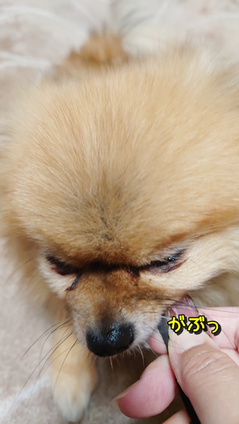スフレのお口のサイズだと、欲張るよりチマチマ食べる方が食べやすいと思うよ~