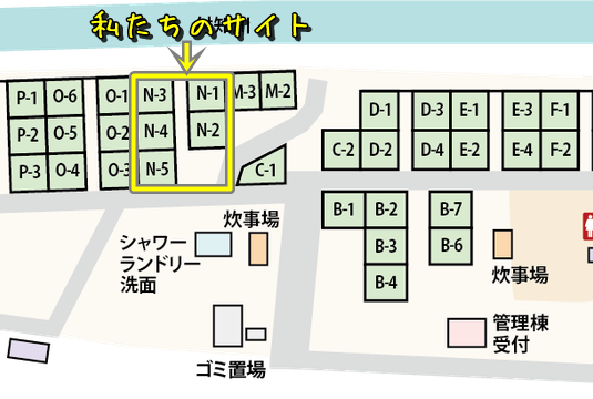 設営が終わりお昼ご飯を食べていると、O-2、O-3、O-4、O-5の4サイトが仲間内のグルキャンの気配
