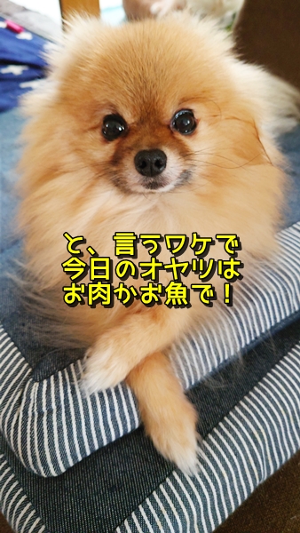 この日のお昼のオヤツは予告通り炭のお麩だったポメっ子達だったのでした❕(ミルヒは癲癇対策でまもるのおやつのアサリ)