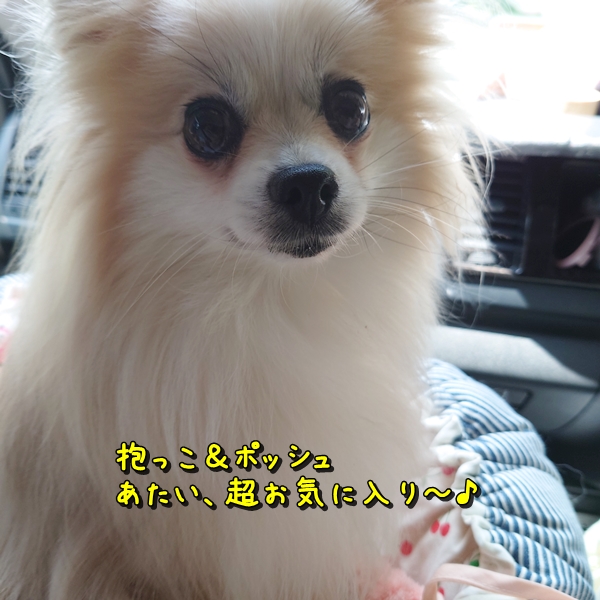 車の中の配置は助手席の私の膝の上にポッシュでぴょんがON❕