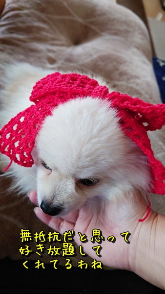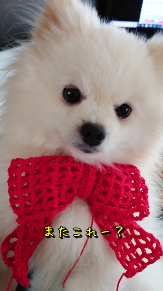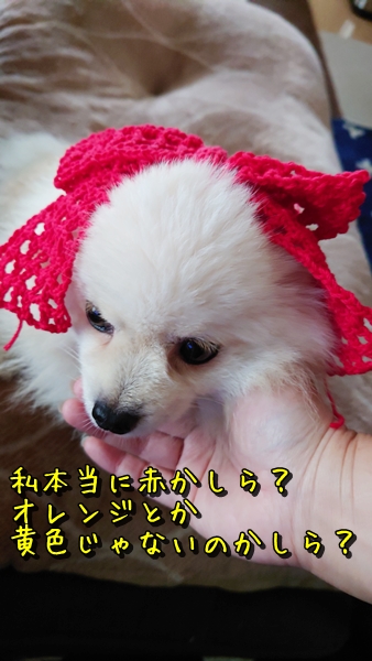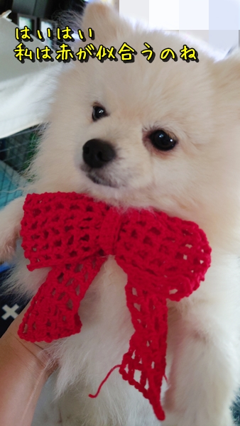 で、この子って一体何色なら似合うんだろう❓🤔って思って赤の糸で同じリボンを作ってみたよー❕