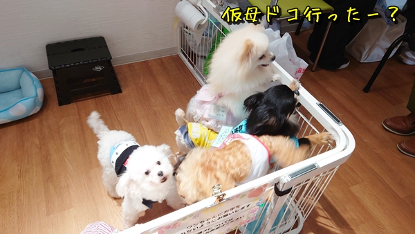来場者が居ない内は保護っ子サークルの側に居たんだけど、来場者が増えてきたら私はサークルから離れたり隠れたりしてたの