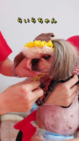実は玉雲寺さんで開催した保護犬お見合い会の時に、Ohanaマルシェで販売していたひまわり帽子を寄付した私
