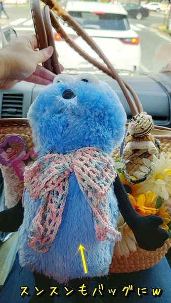 この間クレーンゲームでゲットしたスンスンをバッグに強引に付けました~😙