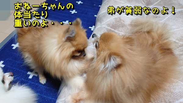 遊びたいってスフレに体当たりすると、スフレが吹っ飛ばされるのよねぇ💦