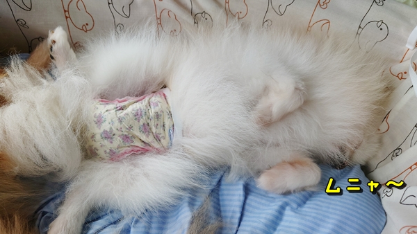 しかもさ、ヘソ天のまま伸びをしたら伸びたまま寝続けるんだけど、スフレは蹴られたままなのよねぇ・・・