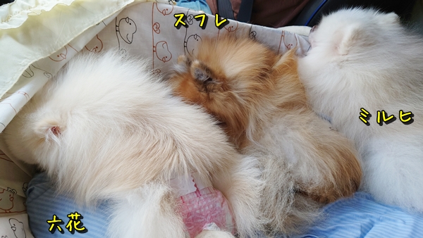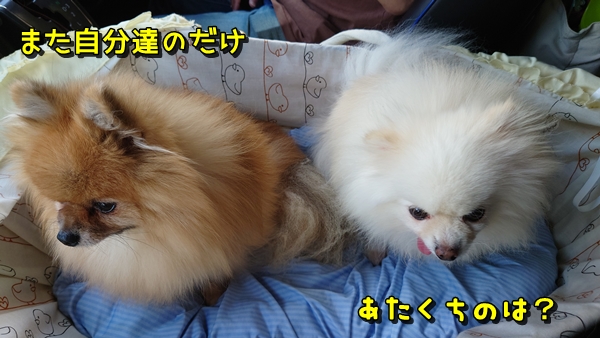 お出かけしても、ポメっ子たちは、長時間車からは出れないし。