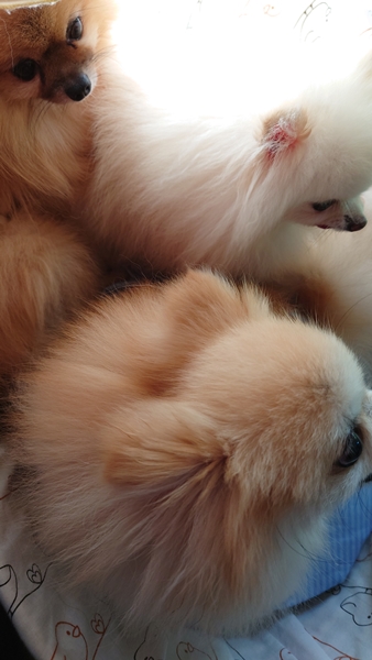流石にこの頭数居ると、リビングと車を何往復もしてポメっ子達を乗せないとならないから、車が動き始めるまでに汗だく~😅