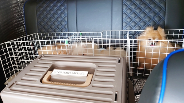 後部座席には、ぴょん(クレートIN)、ジーナ、ミルヒ、ルクリがON
