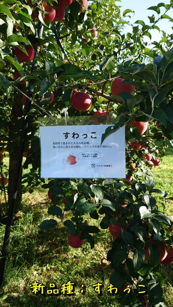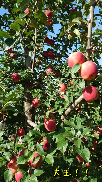で、幸水と今年からの新品種のリンゴを試食させてくれたんだけど、その新品種が美味しかったのと大玉のリンゴって事だったので農園の中の木を見せてもらったよー🍎