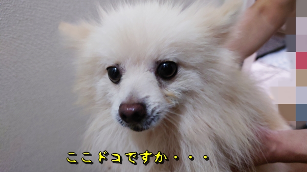 不安そうな顔をして、身体には糞尿の汚れがつき、臭いも中々だったし、被毛の上から触っても肌がベタついてるのが分かった程に薄汚れていたのよね・・・