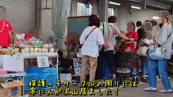 私のブースから保護っ子サークルが見える位置だったので、暇さえあれば保護っ子サークルを眺めていたんだけど