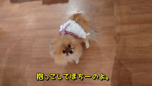ずっとスフレを抱っこしていたんだけど、抱っこしてると腕がしんどいし暑いし・・・でスフレを床に降ろしたら