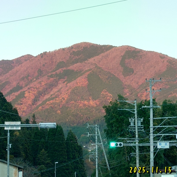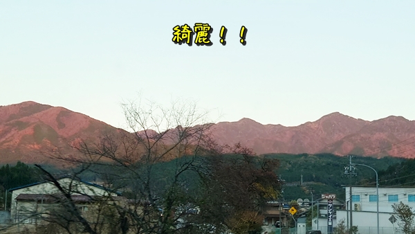 周りの山で低い標高のところは暗くなってきてるんだけど、標高高いところは夕焼けで真っ赤に❕❕