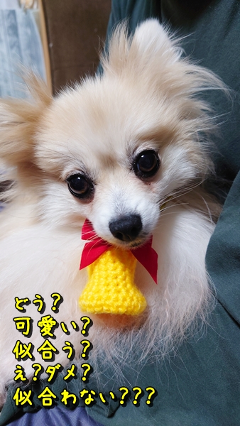 ぴょんは私の編み物失敗作をオモチャとして遊ぶのが好きな子だから、この間作ったクリスマスベルを首に掛けたら秒で破壊されるかなー❓と思って試着しないでいたんだけど、