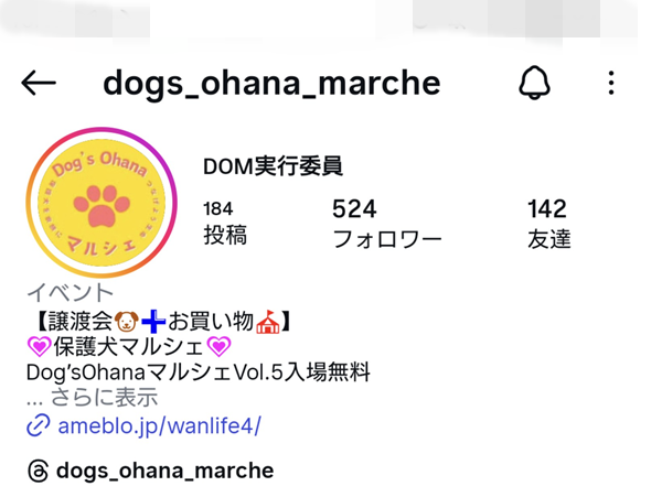 👇コチラがDog’s Ohanaマルシェの公式インスタアカウントとなります