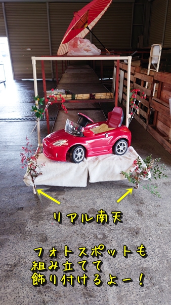 今回私は、番傘と自宅玄関前に植えてある南天を切ってきたものを持って行ったよ~