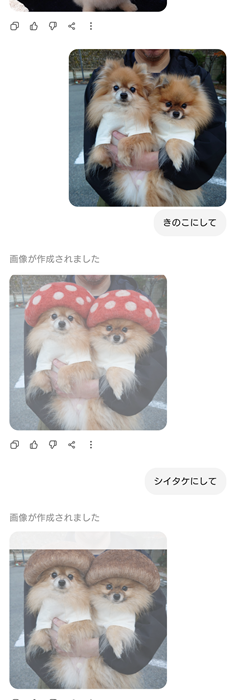 クリスマスのちょっと前ぐらいに、ChatGPTで画像加工してもらって「きのこ犬」にするの流行ってたじゃない❓