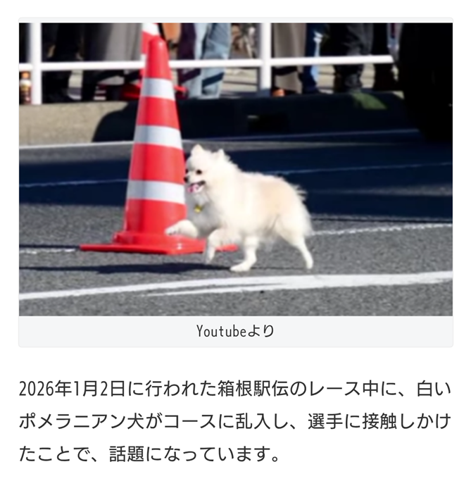 とりあえず、駅伝ポメの飼い主は猛省して欲しい。