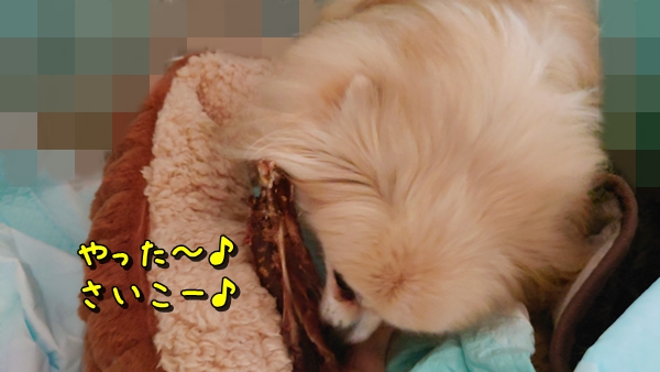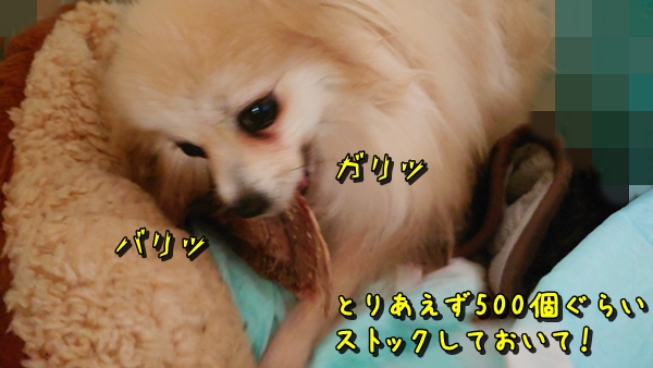 アラを煮ている間に、ポメっ子達にお年玉オヤツの配布❕