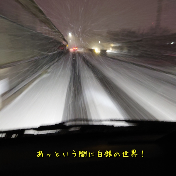 一日中チラチラ雪が降ったりしていたけど、この日の岐阜県は降る予報じゃなかったから降ってもチラリぐらいでしょーとタカをくくってノーマルタイヤのハイエースで義母宅へ行ったというのに💦