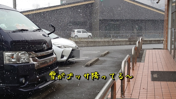 お昼前に家を出発したというのに、ドンキに着くころには雪がチラつき始めたー😲はえーよっ!!