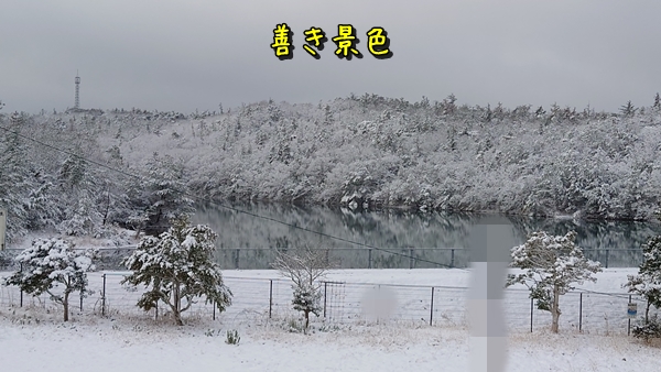その日雪が降り続き、翌朝も午前中は雪がチラホラ⛄自宅西側の貯水池は