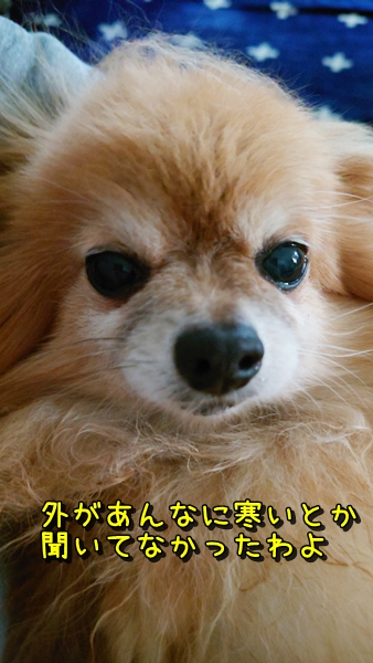 クソ寒いのに外に行きたいという子は外の気温を思い知るがいい😙と、ぬくぬくの部屋からルクリを抱っこで外に連れ出したらテンションダダ下がりというね🤣