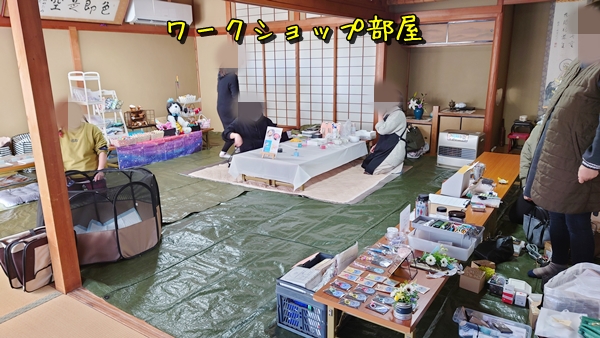 徐々に出店者さんも集まり始めたので、第二会場の設営はワークショップの荷物搬入が終わってからで計画していたので、ワークショップ組の荷物を車から本堂横の和室に搬入お手伝い❕