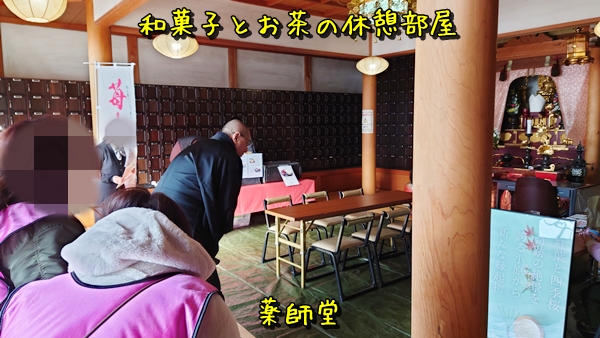 で、この薬師堂の方は和カフェ的立ち位置で和菓子の販売と松葉茶の試飲&販売だったの。