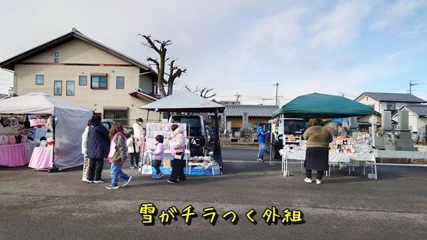 smilewanのテーブルとか広げるのを手伝ったりしていると、雪対策で早めに出発した出店者さんが到着❕