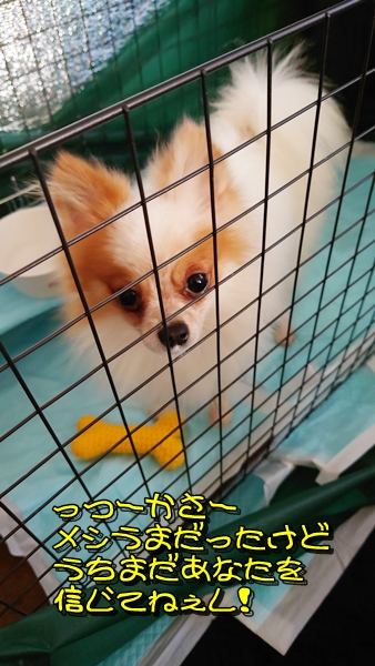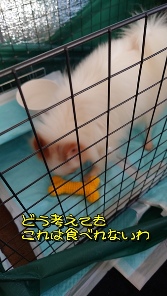 初日と二日目は基本的にあまりケージから出さずに、うちの様子を理解してもらうようにしてるんだけど、テレビに対して吠えるとかしない(する勇気が無い)ようだし、私が動く度に目で追って色々理解しようとしてるから、ちょっとケージから出してみましょうかね~