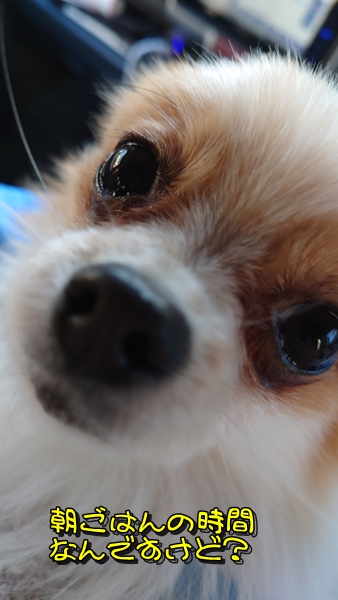 朝起きて、ポメっ子達の朝ごはんの時間は、私は128(いっぱ)と車に居ました
