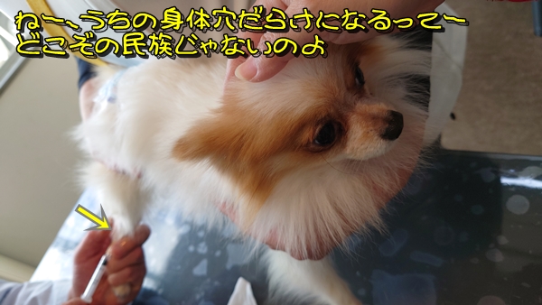 再び診察室に通されて、私が保定した状態で痛み止めの注射をパスっとね❕