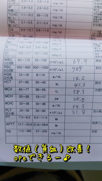 確かに前回の検査の時よりも、舌の血色も良かったし、今回は貧血が改善していると自信が無かったワケでは無いけど、それでもやっぱりこうやって数値で見るまでは心配だったのよ~💦