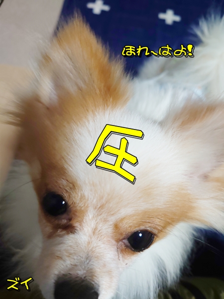 さて、この左と正面からの圧をどうやって切り抜けたらいいのやら・・・🤔と思案していると、痺れを切らした128(いっぱ)はおもむろに長座布団に飛び乗り、スフレに絶対ぶつかる場所で