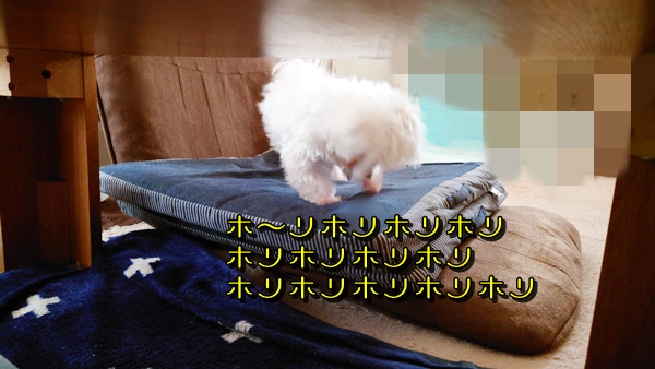 旦那の座椅子で必死に穴掘り😓