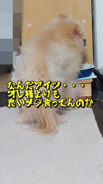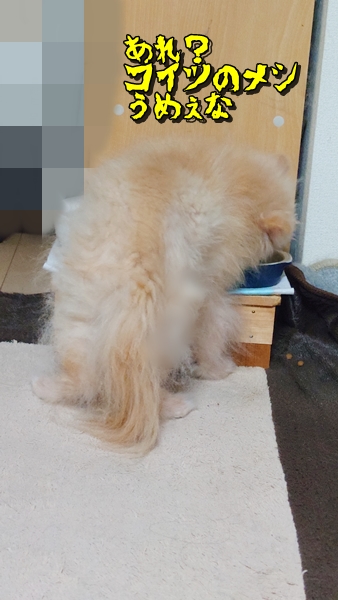 自分のケージのご飯は食べないクセに、スフレのご飯を食べてる・・・