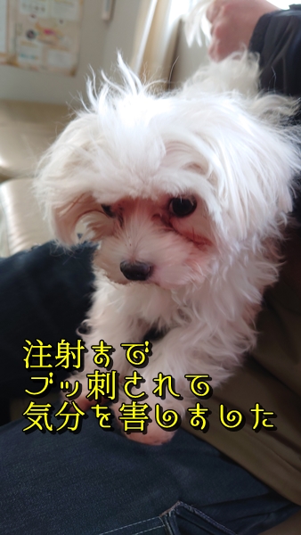 避妊手術後の抜糸と、便の再検査と、10種ワクチンの接種の日だもの~😙
