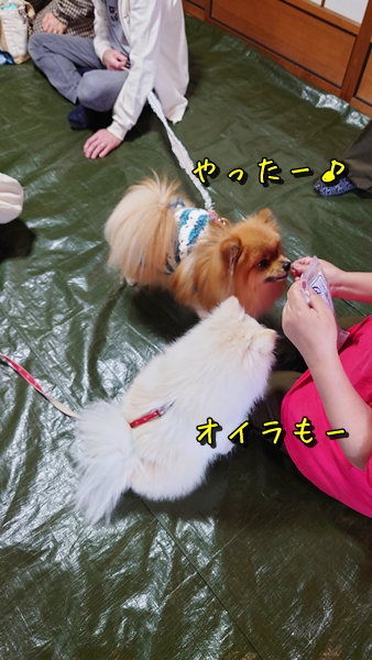 ここで、まりあさんからわんこ達におやつの支給TIMEが始まったよー✨