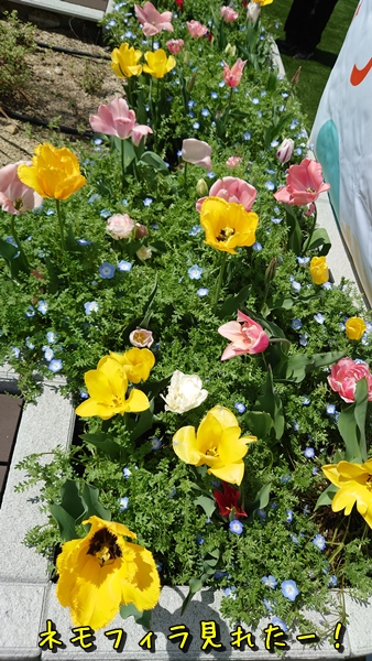 ネモフィラとチューリップとかの寄せ植え花壇が有ったー✨