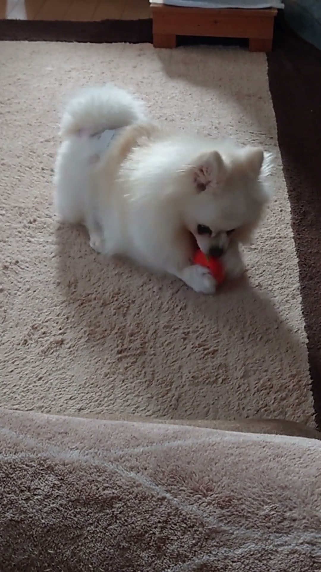 多分パピーの頃にオモチャを与えられてた時期もあったんだろうなー