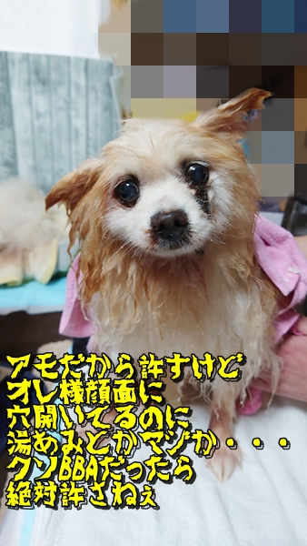 アモ、相当気を遣って顔にシャワーが掛からないように洗ったみたいだよ❓